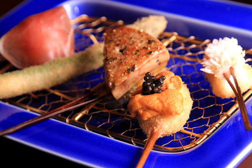 メニューは、世界3大珍味のフォアグラ、トリュフ、キャビアや、締め・寝かし・活けといった最適な仕込みを施した鮮魚串。