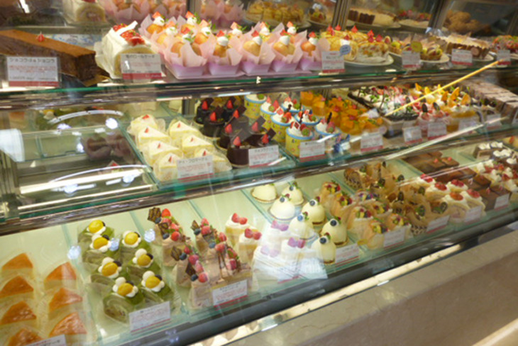 店内は太陽の光がたっぷりと差し込む明るい空間。ぱっと目を引く大きなショーケースには、旬のフルーツをふんだんに使用したタルトや、深みのあるチョコレートケーキなど数多くのスイーツが並びます。