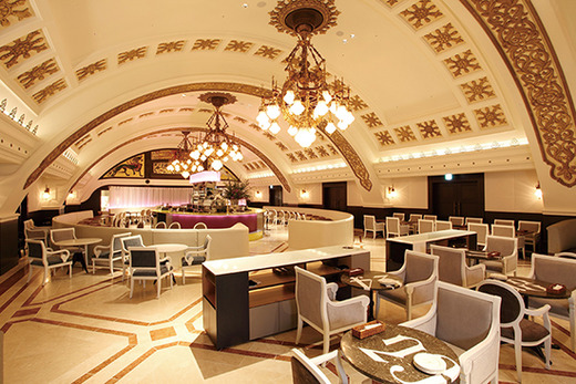 アーチ型の天井を再現したシャンデリアや内装。