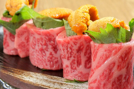 刺身、寿司、丼を和牛で表現するコンセプトで斬新さを加えた今までにない料理に常にチャレンジしています!お肉だけではなく、雲丹を使用した「雲丹の近江牛大トロ巻き」など、お肉と海の幸のコラボも行い、あらゆる角度で牛肉を使った開発を行っています!