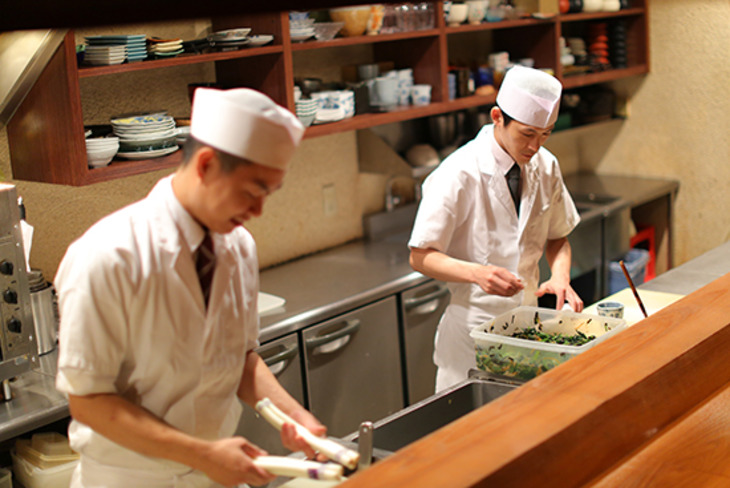 提供するのは、日本料理一筋に修業を積んだ料理人が心を込めて作り出す日本料理。食材は産地・鮮度に徹底的にこだわっており、素材本来の味を最大限に引き出す下ごしらえのポイント、刺身・焼き物・煮物・天ぷら・揚げ物など適した調理法をしっかりと学べる環境です。また、日本料理は繊細な味付けだけでなく、視覚的にもお客様を楽しませる彩色豊かな盛り付けが特徴。「これぞ日本料理」と胸を張って言える仕事を覚えていくには、まさに最適な環境です。